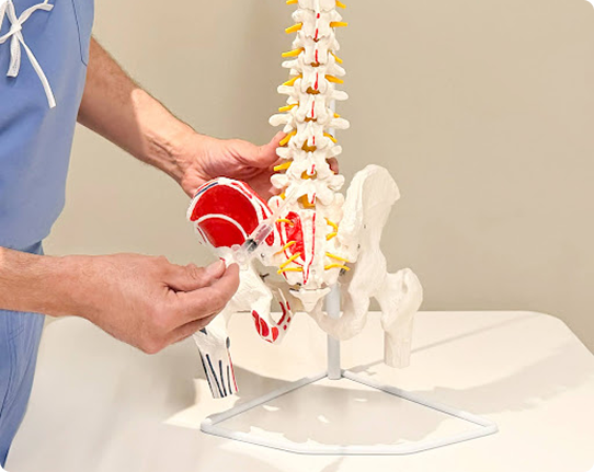A physician reviews posture, movement patterns, and pain triggers (especially extension or rotation).