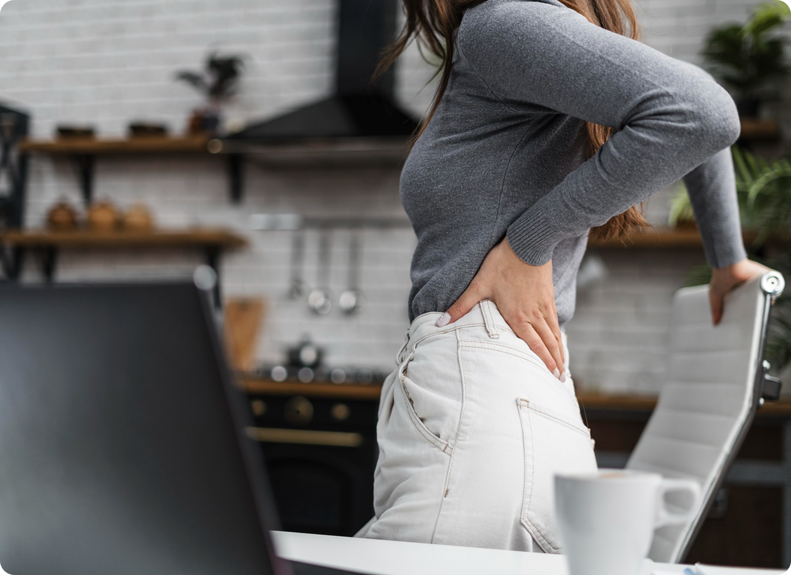 Sitting flexes the lumbar spine and compresses facet joints and discs, especially if the core is de-conditioned. Over time, this posture leads to inflammation and stiffness. Supportive cushions, regular breaks, and targeted therapy for core and glute muscles often relieve symptoms.