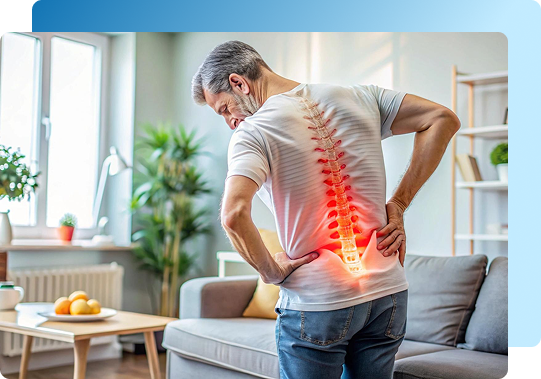 Facet joints allow bending and twisting. With aging or injury, they may develop arthritis and inflammation that causes sharp localized pain, often worse when leaning backward or standing long periods. Facet injections or RFA can calm these joints for months at a time.